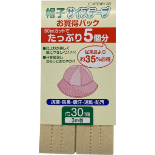 帽子の内側をふちどり、美しい仕上がりになります。抗菌・防臭・吸汗・速乾・防汚性に優れ、いつも爽やかな肌ざわりです。 お買い得パックの3m巻です。60cmカットで帽子5個分とれます。